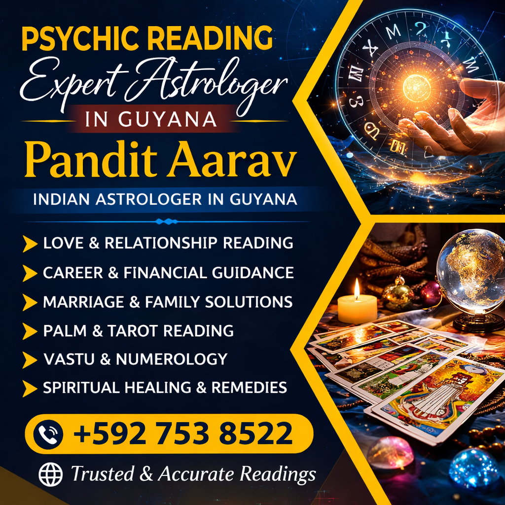 Psychic reading Astrologer in Guyana has become increasingly popular among people seeking clarity about their life, relationships, and future. In today’s fast-paced world, many individuals face confusion, emotional stress, and uncertainty about important decisions. Psychic readings can provide guidance and insight that help people understand their life path and make better choices. In Guyana, many people trust Pandit Aarav, an experienced Indian astrologer in Guyana, for accurate psychic readings and astrological guidance.